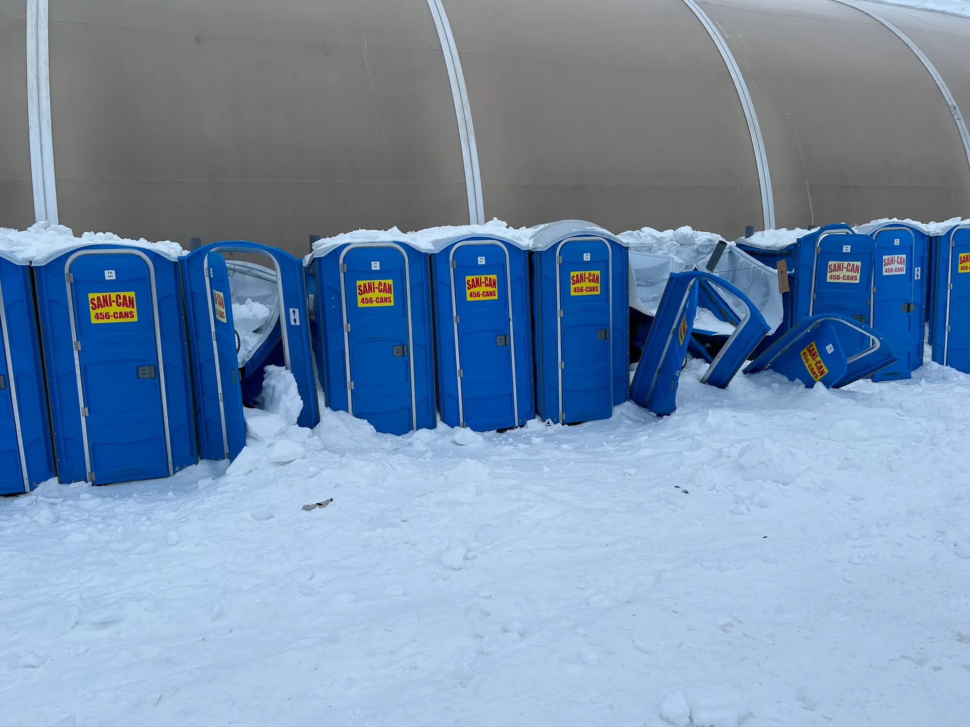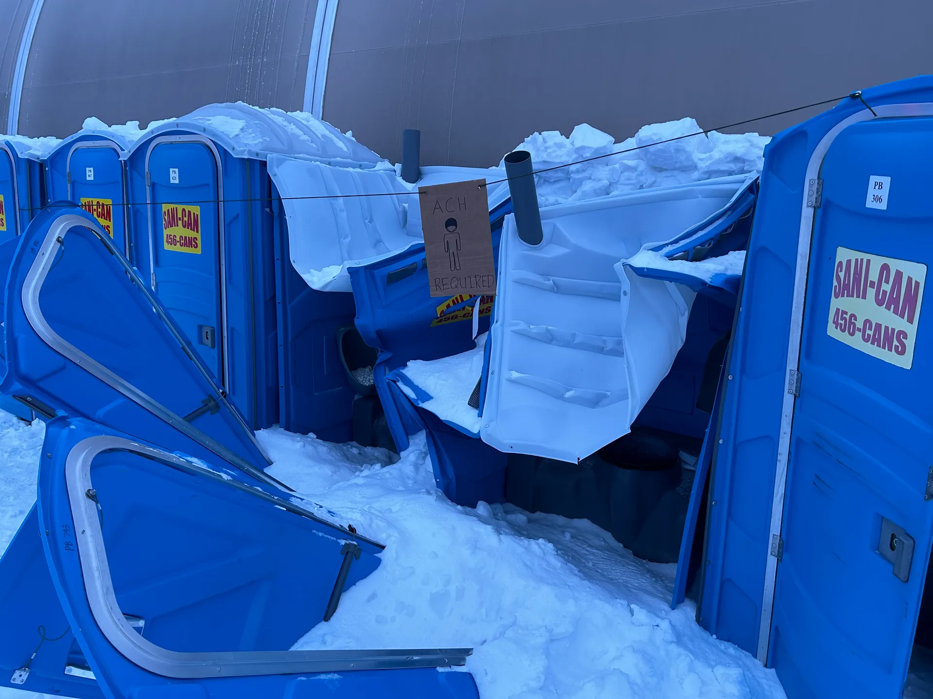 If you have never witnessed a row of porta-potties destroyed by an avalanche of ice and snow sliding off the roof of a LAMS tent in the Alaskan interior, I'm not sure I can adequately convey the image. The plastic structures didn't stand a chance. They were crushed, tipped, caved in. The contents — well. You can imagine the contents.