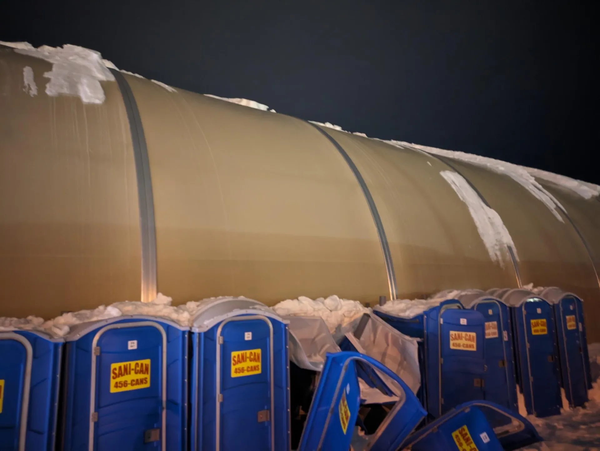 They placed the porta-potties directly adjacent to the LAMS. In the snow. Because where else would they go.
